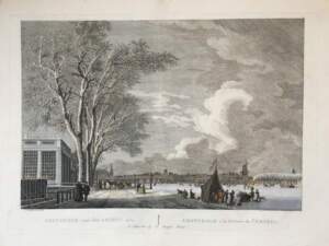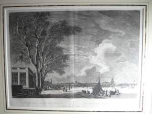 Amstel IJsgezicht Hoge sluis brug Aanzicht van de stad Amsterdam Herberg de Berebijt Herberg de Ijsbreker Wintergezichten Schaatsen Ice skatingUitgever: