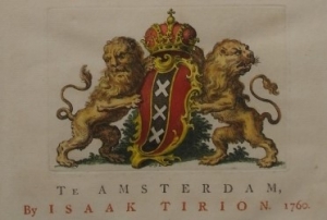 Isaak Tirion (Amsterdam, gevestigd in het negende huis vanaf den Dam in de Kalverstraat.)