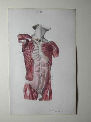 Anatomie Spierstelsel Myologie ontleedkunde van de Mensch Medische prent Jules Cloquet SevereynsUitgever: