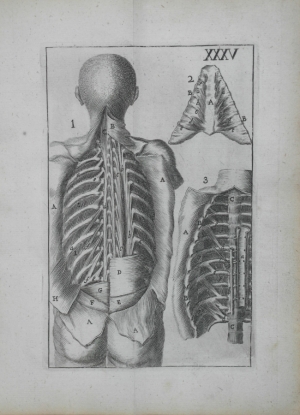 Anatomie ontleedkunde van de Mensch Medische prent Rug RuggewervelUitgever: