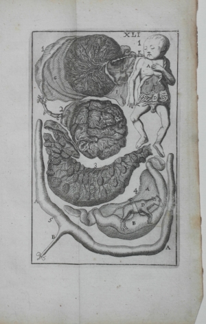 Anatomie ontleedkunde van de Mensch Medische prent Ongeboren kindUitgever: