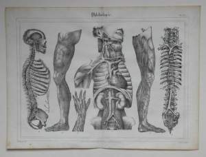 Anatomie Anatomy Kunstzinnige Medische prent Medical Art print Skelet Truss