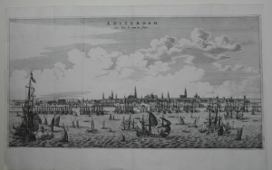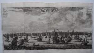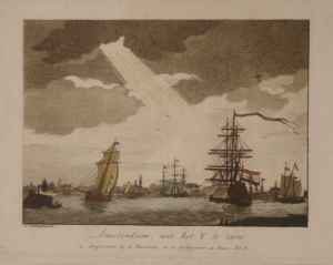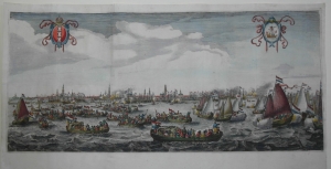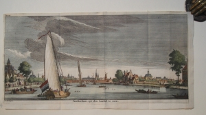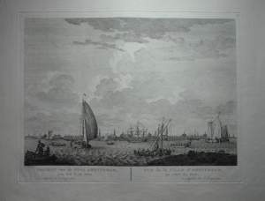 Profielaanzicht van Amsterdam IJ Profile of Amsterdam Stadsaanzicht Spelevaren Salomon Savery Simon de Vlieger Spiegelgevecht MaritiemUitgever: