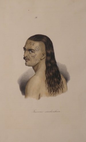 Sandwich Islands Hawaii Hawaiian Islands Oceania Oceanië Native Warior Guerrier sandwichien Sandwich Eilanden Inwoners Tattooed Tattoos Tatoeages AragoPublisher: