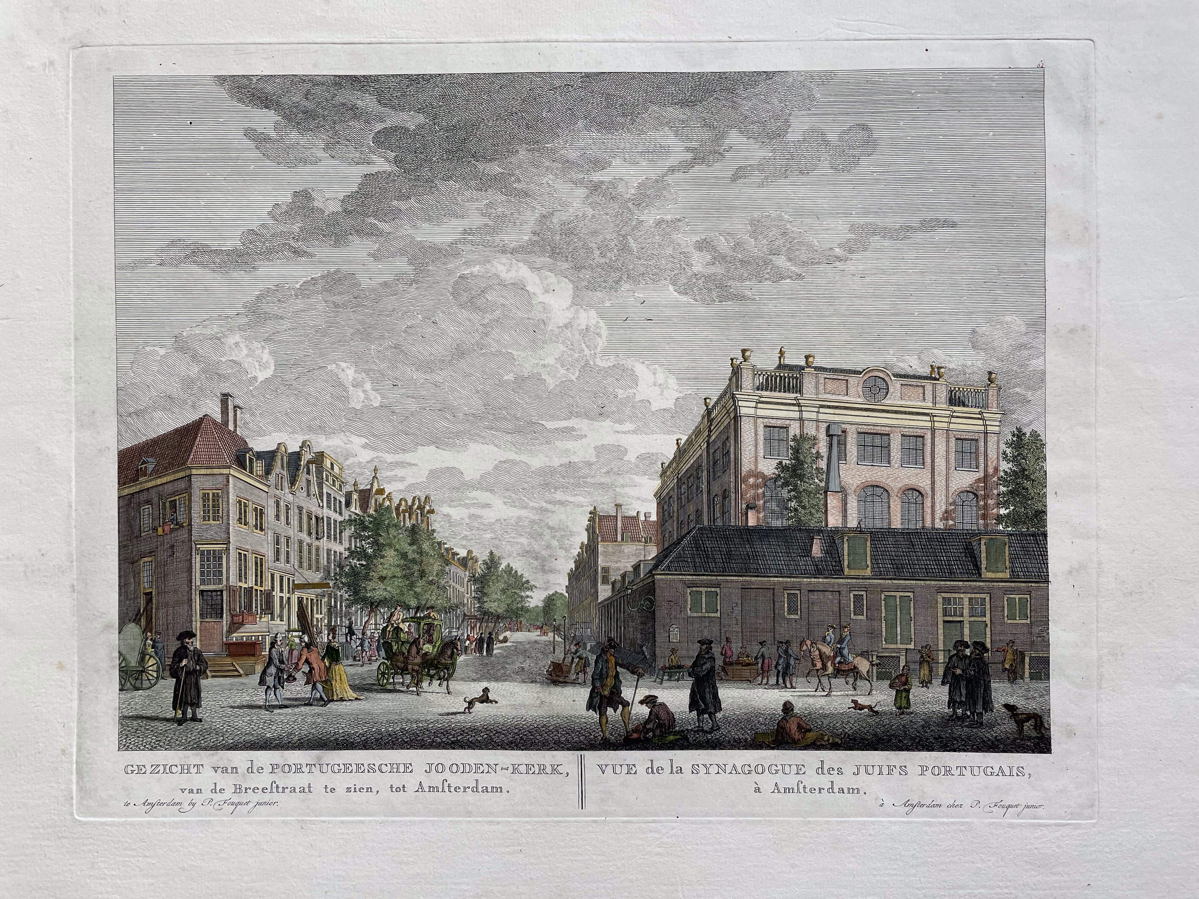 Gezicht van de Portugeesche Jooden - Kerk van de Breestraat te zien, tot Amsterdam ~ Vue de la Synagogue des Juifs Portugais, à Amsterdam